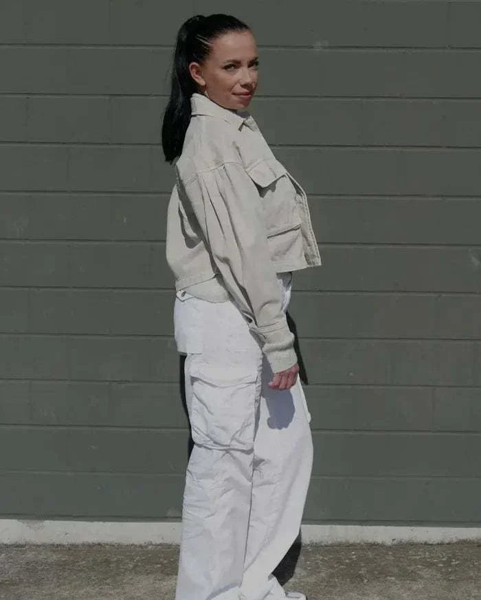 Diese figurbetonten Cargo-Jeans sind ein Must-have für jede Gelegenheit. Diese Jeans kann mit einem süßen Crop-Top und Schuhen für einen Abend-Look oder mit einem T-Shirt und Sneakers für einen lässigen Look kombiniert werden.